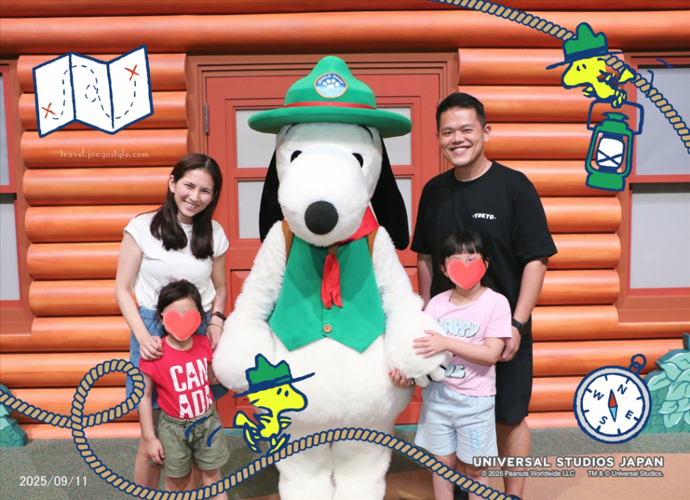 After that, we entered Snoopy Studios, and my younger daughter wanted to join the relatively short queue to take photos with Snoopy. Initially, my husband was our unofficial cameraman, but the one managing the queue got a Mandarin-speaking staff member to convince our whole family to take a photo together. Good business move there. Because we saw the beautifully taken photos and bought two of them (hard and soft copies included) for ¥2,200 (S$19.20) as mementoes.