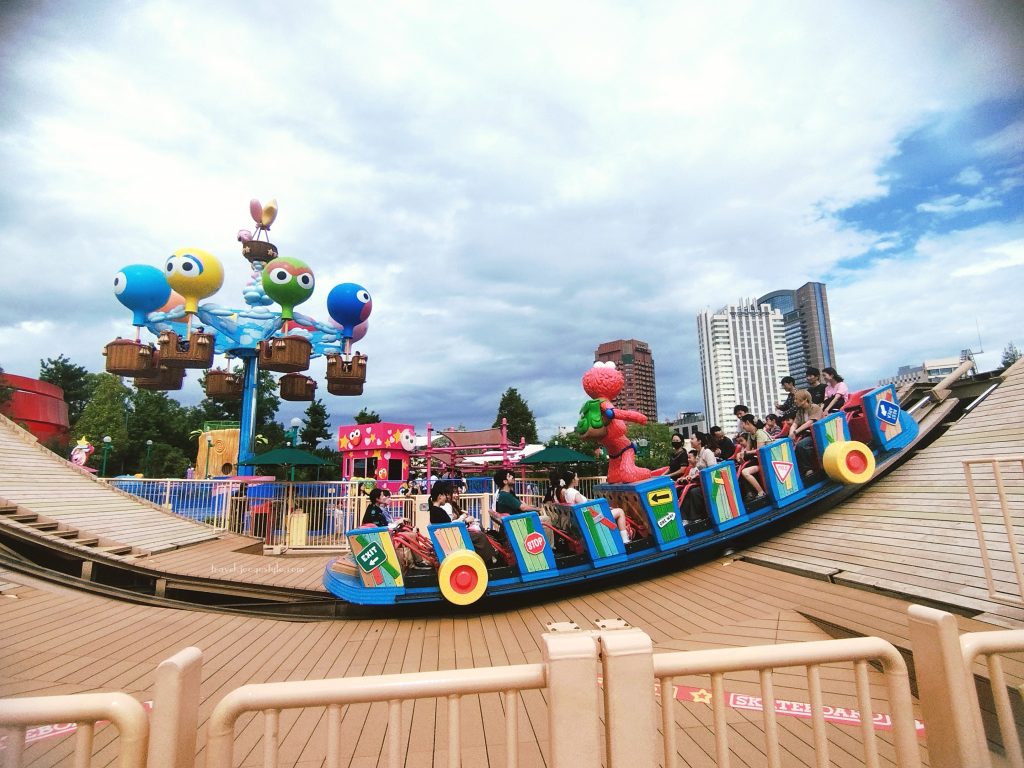 We rode on Big Bird’s Big Top Circus (carousel), Elmo’s Go-Go Skateboard* (kids’ version of the pirate ship), and Moppy’s Balloon Trip* (a pseudo hot air balloon ride). My daughters love them all, especially the Skateboard, because it is not as scary as it seems.