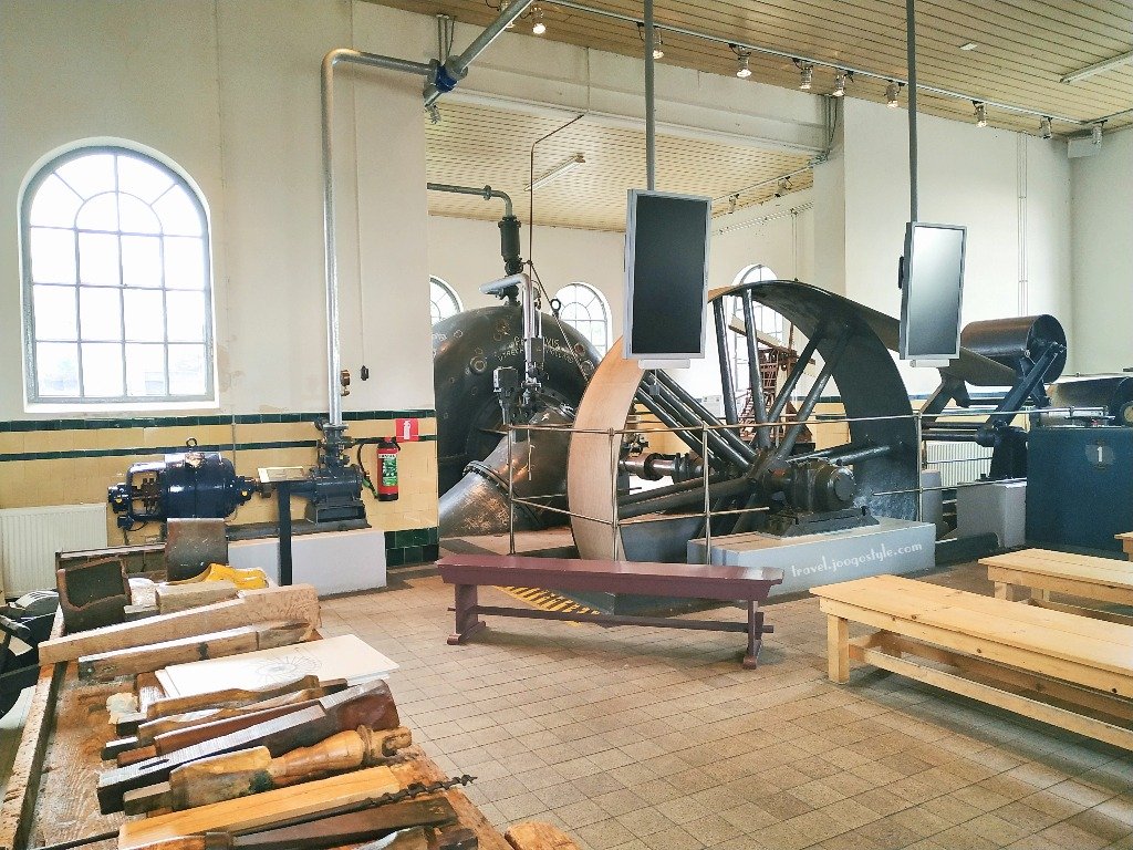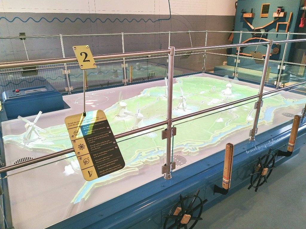 For our first stop, we crossed the bridge to Wisboom pumping station (indicated as No.3 on the APP) on our left. Over there, we played windmill games amidst interactive displays and film to learn more about the windmills. Entering the engine room at this station, we managed to take a close look at the workings of an electrical pump. This pump replaced the steam-powered pump that was pounding away here from 1868 to 1924.