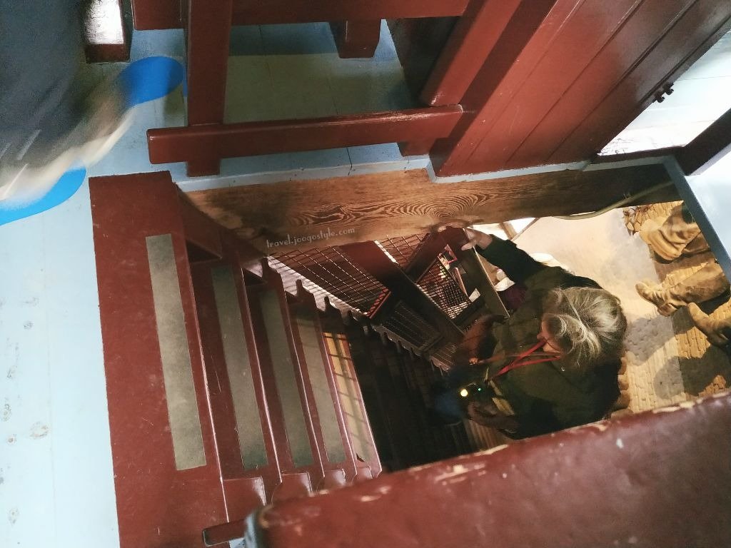 I left our stroller at the entrance gate and baby wear baby EX in a front carrier. With her in my bosom, I climbed up and down the steep stairs inside the windmill. I managed to reach the attic built around the whooshing wheels of the giant machine.