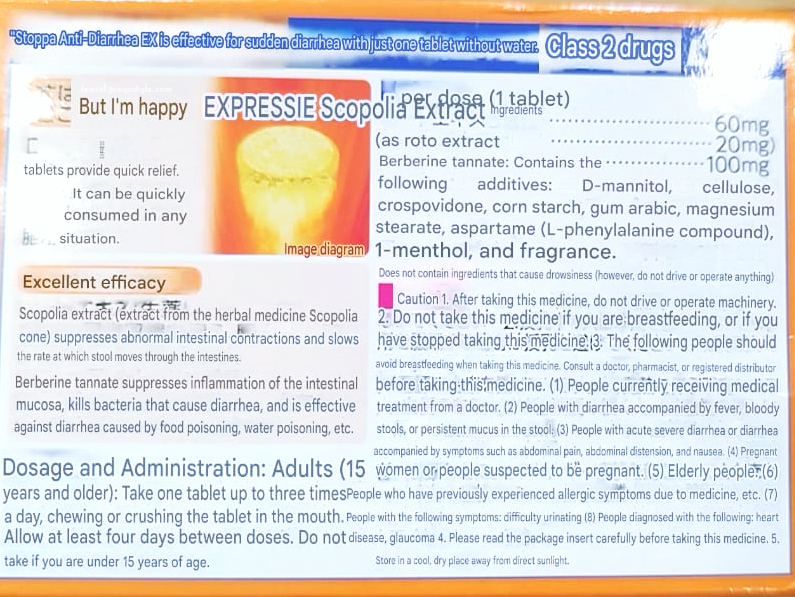 2 tablets per time, and it’s only for those above 15 years old. Avoid taking on an empty stomach. For more information, visit: www.ssp.co.jp/eve/en.