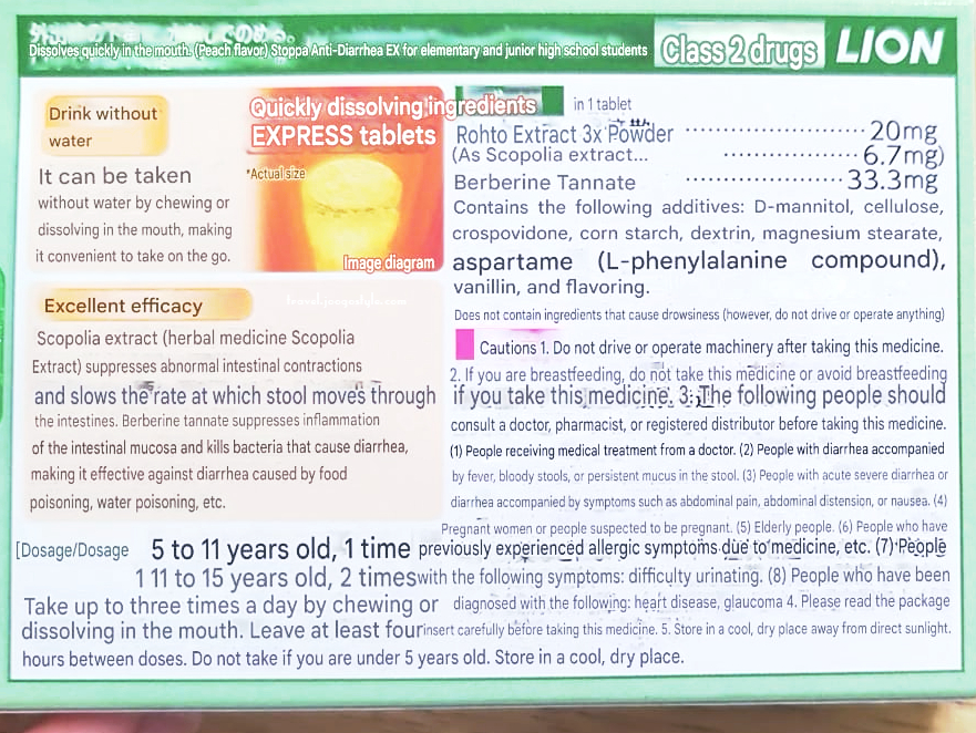 However, we couldn’t find the same one at OS Drug, and so bought another one that’s also recommended online. These quick-dissolving pills would be good for children who don’t yet know how to swallow pills, or for adults who don’t like to swallow pills. See below for the instructions. See the first picture of this section for their front covers.