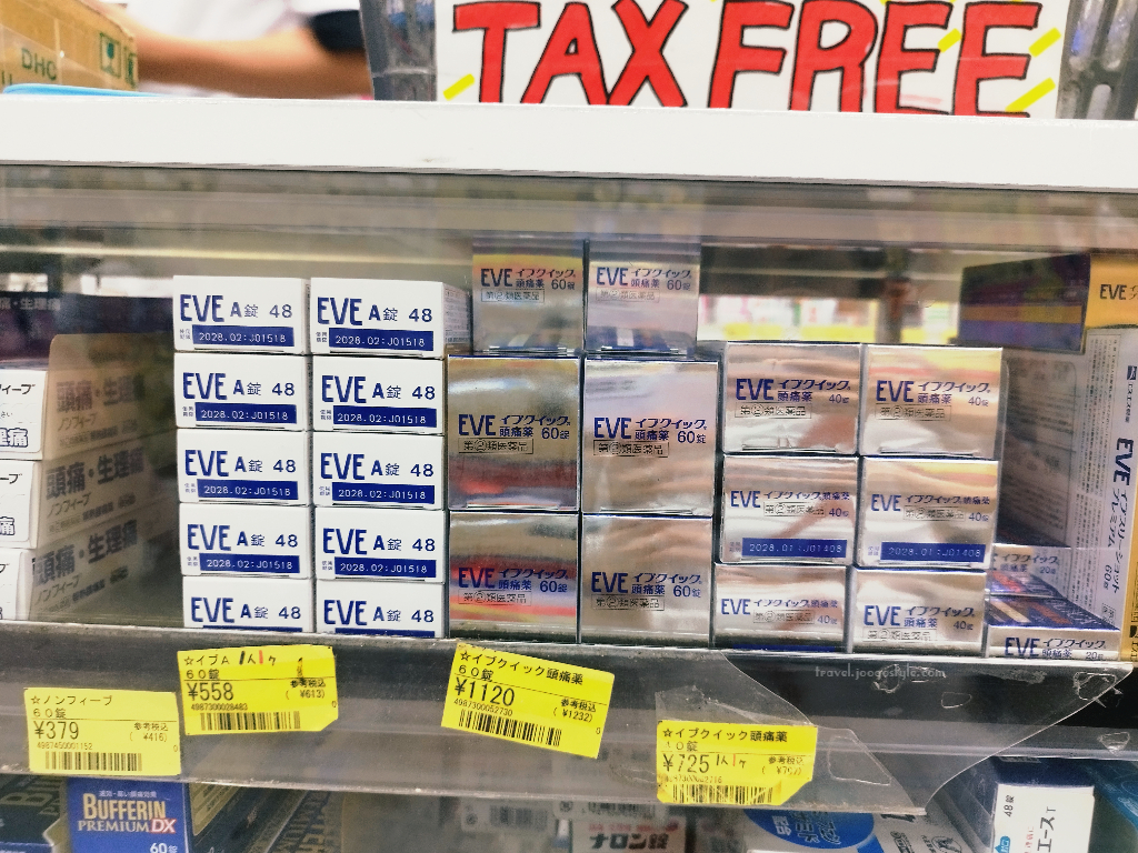 - EVE Three Shot Premium – For various pains, particularly severe headaches, menstrual pain and stiff shoulder pain. If I am not wrong, this has the strongest effect of them all.