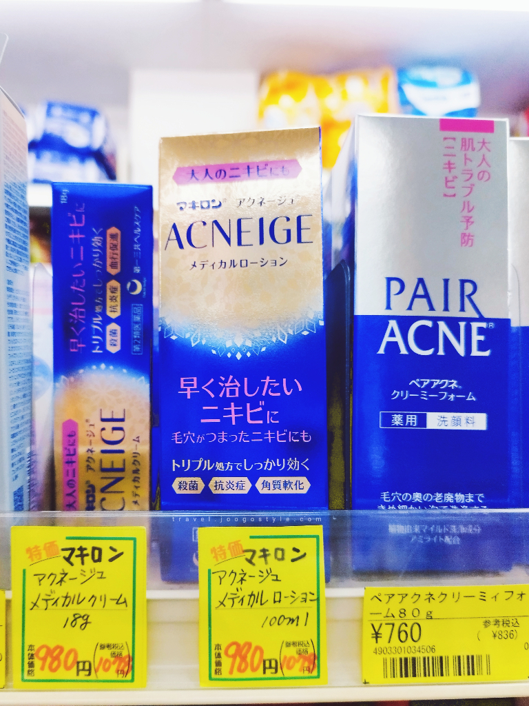 Towards the end of my trip, I had a big pimple on my chin, and I tried really hard to resist popping it. It’s timely for me to consider carting out a pimple cream. I did a quick online search and ‘Acneige’ came recommended, later, I realised ‘Pair Acne’ is also recommended. Other than creams, the two brands have face wash and lotion.